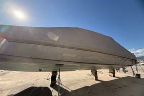 Drystacked indoors in the UK and dry-berthed ashore in Spain, with a hull and